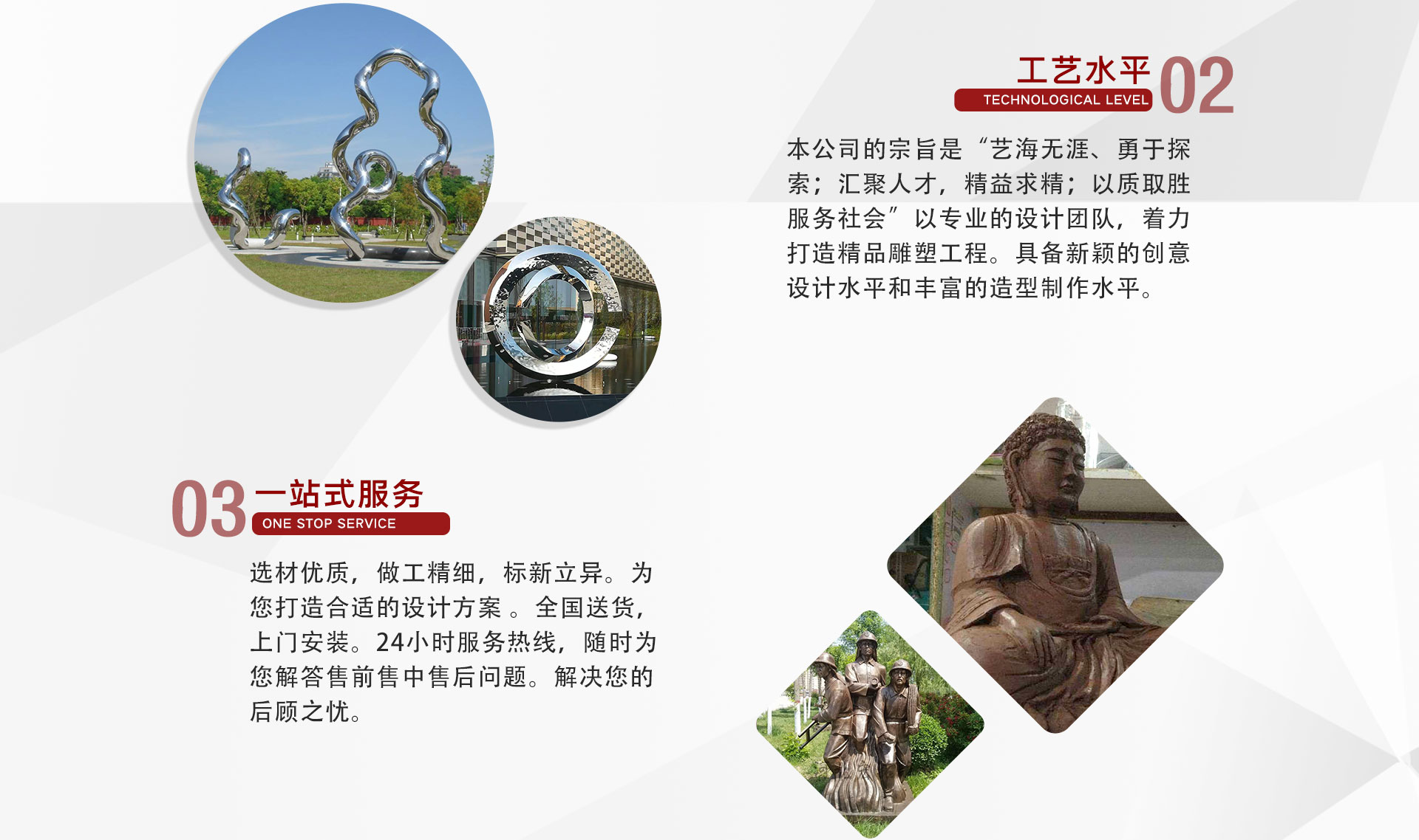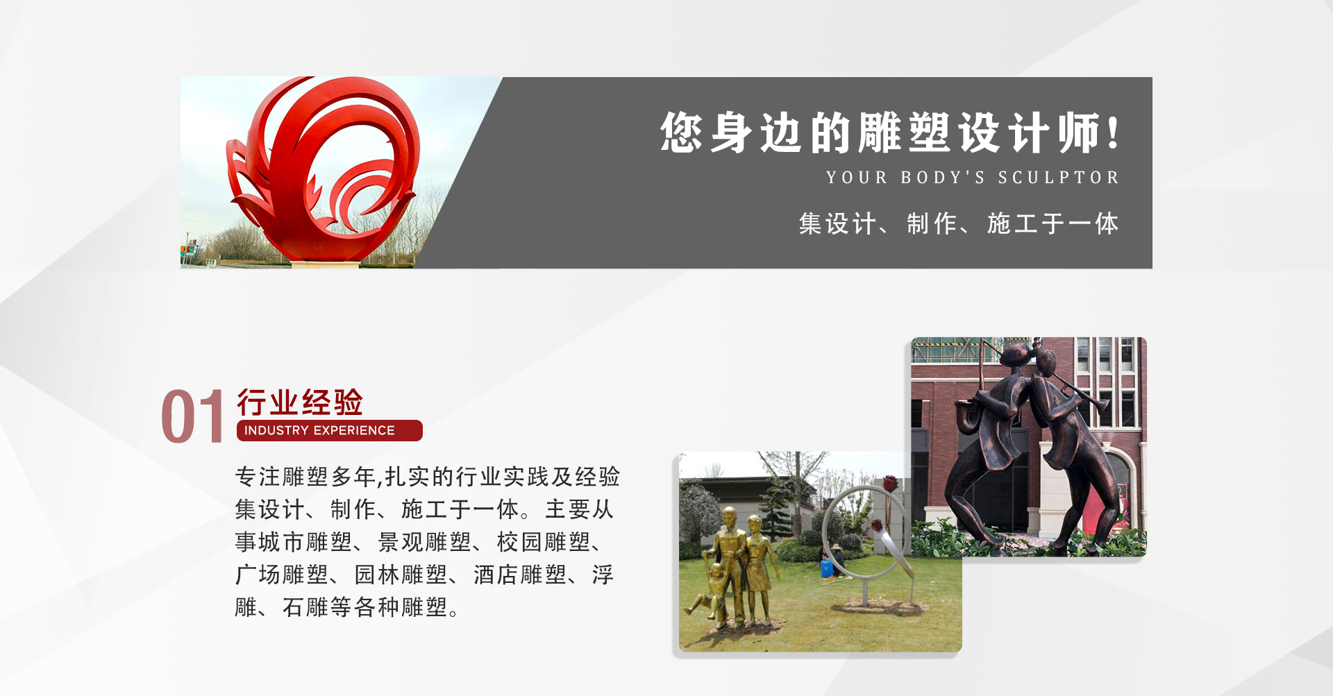 關(guān)于我們安徽麗豪雕塑藝術(shù)有限公司是集設(shè)計(jì)、制作、施工于一體的專(zhuān)業(yè)雕塑公司。本公司主要從事城市雕塑、景觀(guān)雕塑、校園雕塑、廣場(chǎng)雕塑、園林雕塑、酒店雕塑、浮雕、石雕等各種雕塑。工程材質(zhì)可選用不銹鋼、鑄銅、玻璃鋼、人造砂巖、grc、grg等材料。本公司的宗旨是“藝海無(wú)涯、勇于探索;匯聚人才,精益求精;以質(zhì)取勝、服務(wù)社會(huì)”以專(zhuān)業(yè)的設(shè)計(jì)團(tuán)隊(duì),著力打造精品雕塑工程。主要產(chǎn)品有:鑄銅雕塑、鍛銅雕塑、不銹鋼雕塑、砂巖雕塑、玻璃鋼雕塑、grc系列等系列。我們本著“以客為尊、誠(chéng)信經(jīng)營(yíng)、質(zhì)量為首、薄利多銷(xiāo)”的經(jīng)營(yíng)理念,依托便利的交通,優(yōu)越的環(huán)境,與您攜手共同開(kāi)展友好的交流與合作。